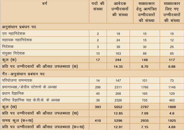 | क्रमांक | अनुसंधान प्रबंधन पद (आरएमपी) | स्कोरकार्ड अंक | साक्षात्कार अंक | कुल |